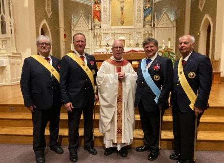 Saturday Sept 6th, the 4th Degree Former Masters held their annual meeting and picnic, hosted by FM Robert and Lady Cindy Rex Vandesteene at their beautiful home in Otisville. Everyone brought a dish to share. Also in attendance was SD Barry and Lady Mandy Borsenik (also Former Master), State Treasurer Vern Miron (also Former Master), newly appointed Vice Supreme Master Walter Winkle and Lady Karen (Past State Deputy and Former Master) and the current Masters. It was so good to see everyone. Mass was celebrated by Fr. Robert Creagan.